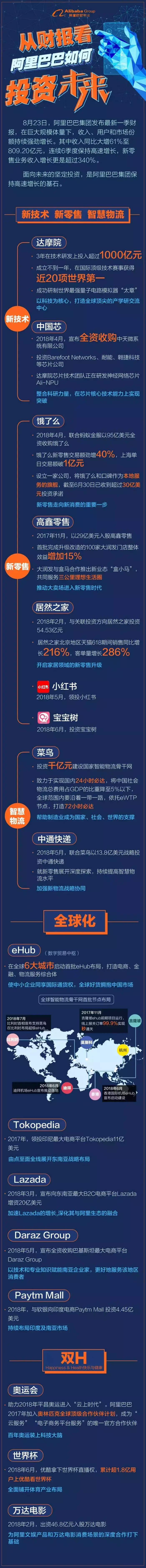 北京时间8月23日晚,阿里巴巴集团公布2019财年第一季度(2018.4.1-2018.6.30)财报。财报亮点不少:阿里营收增长领跑全球互联网巨头,164亿股权奖励员工,投资未来动作不断。