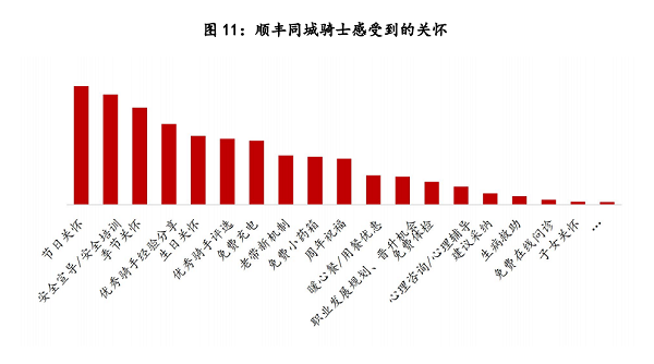 从《报告》中不难看出,骑士群体的多元性不仅体现在人群身份上,也体现在他们的需求上。骑士群体的可观收入吸引了越来越多人加入,在经济收入稳定后激发了他们的精神需求、自我价值需求和职业发展需求,即配平台对骑士的关怀不能再仅限于收入和增收上,更应关注骑士的身心健康、职业晋升、技能提升等。例如顺丰同城多年来在针对现状不断迭代策略,为骑士带来更好服务和发展扶持计划,持续拓宽骑士多元发展的路径,为骑士创造更大成长空间。