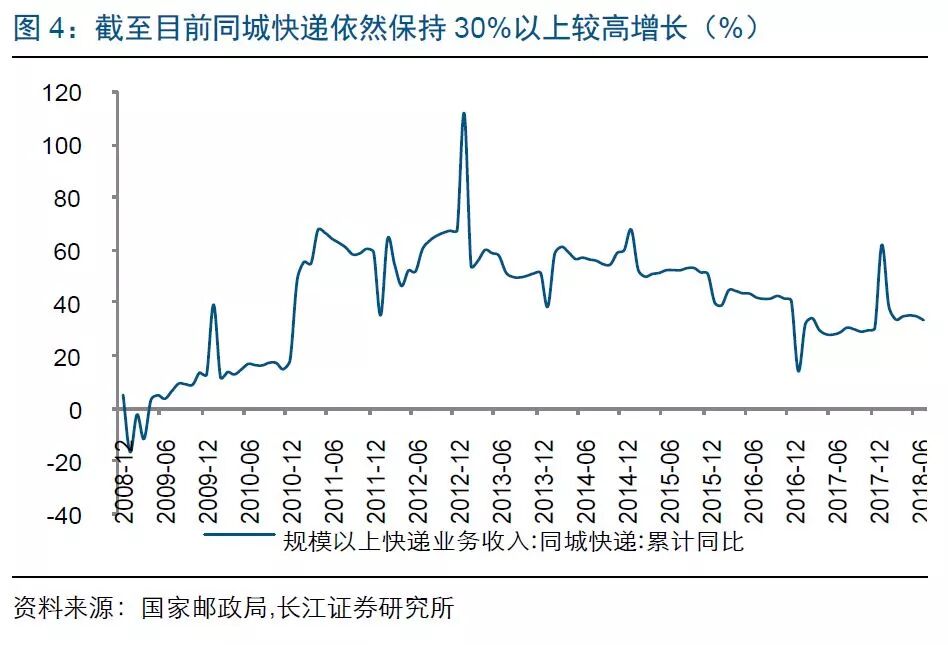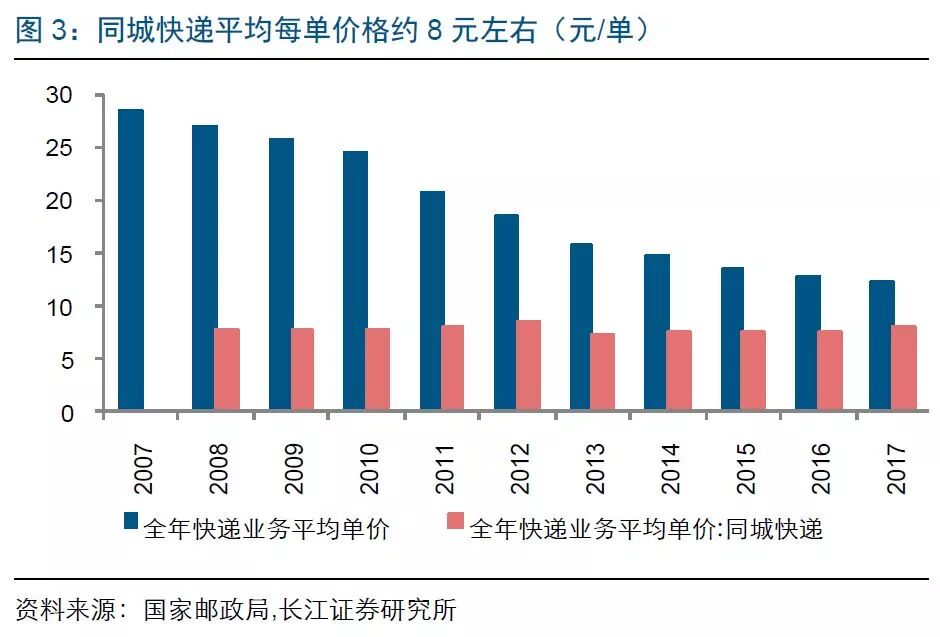 同时,从近几年来看同城快递配送每单价格相对稳定,平均保持在8元/单左右,总体成本相对可控,由此激发同城即时配送需求持续保持较高增长水平,截至2018年7月同城快递同比增长仍保持30%以上。