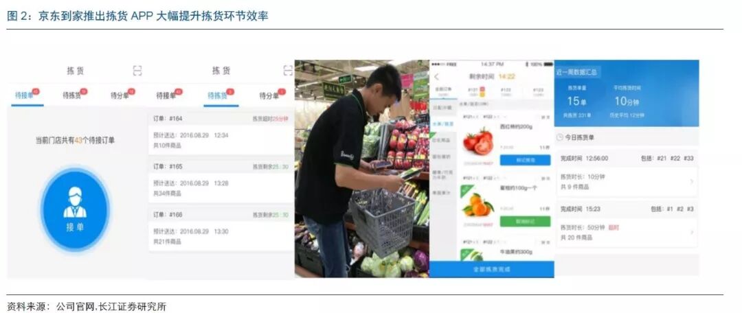 所以如何提升配送时效是核心,而配送中间耗时较长且存在最大用时不确定性的环节在于分拣,尤其是在订单内所含商品较多时,由于实体门店商品布置较复杂,分拣商品的顺序与布局无法有效匹配,存在较多的冗余跑动情况,而容易造成耗时较长,由于此在京东到家刚推出时其由于分拣环节的不确定性,其配送保障时长通常在两小时。