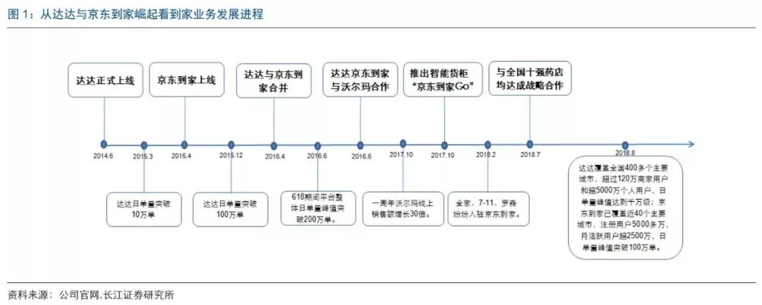 在二者合并后经营规模更大幅度的提升,2016年618期间达达-京东到家平台日单量峰值突破200万单,创下新的记录,并陆续形成与大的企业商户合作,相继与沃尔玛、华润万家、永辉超市等大型超市集团合作,并于2018年开始大力进入便利店、连锁药店等领域。