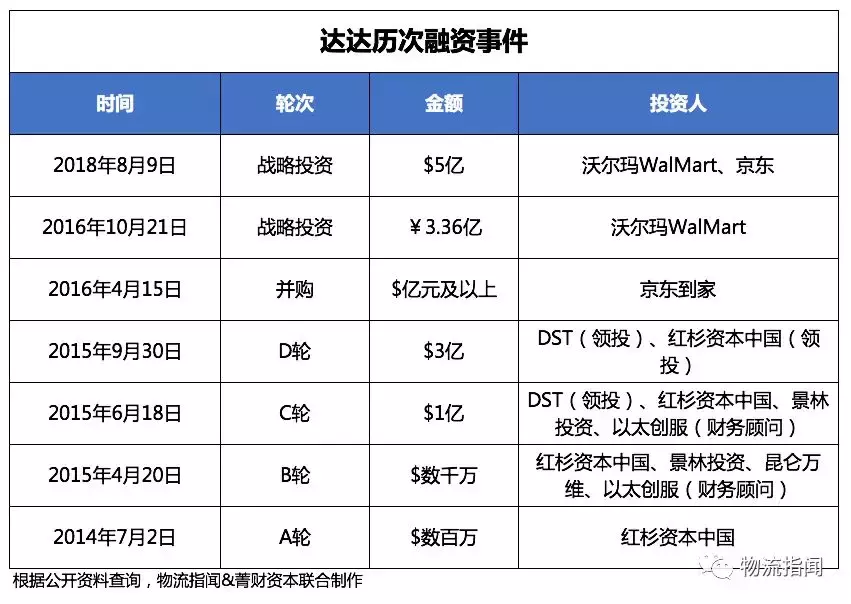 8月9日,达达-京东到家正式宣布,已完成最新一轮5亿美元融资。