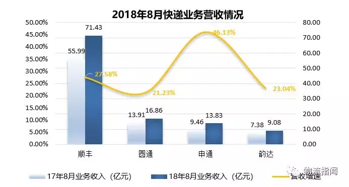 韵达8月份实现快递服务业务收入9.08亿元,同比增长23.04%;业务量达到5.74亿件,同比增长49.48%。