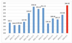 图:顺丰控股月度营收走势图(2021.6-2022.6)