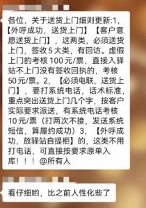 近日,申通快递员吴先生向南都记者反映,今年2月以来网点提高了对快递员送货上门的要求,送货上门每票奖励0.6-0.8元,否则每票罚款10-100元,其认为考核机制设置不合理。3月15日,吴先生所在网点负责人对此不予回应,并表示具体情况需咨询申通快递总部。