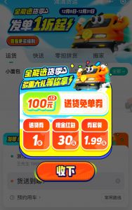 12月8日,滴滴货运启动“全能送货季”活动,对用户和司机推出双重激励:用户发单1折起,完单就抽奖;货运司机师傅将共同分享1000万红包奖励。