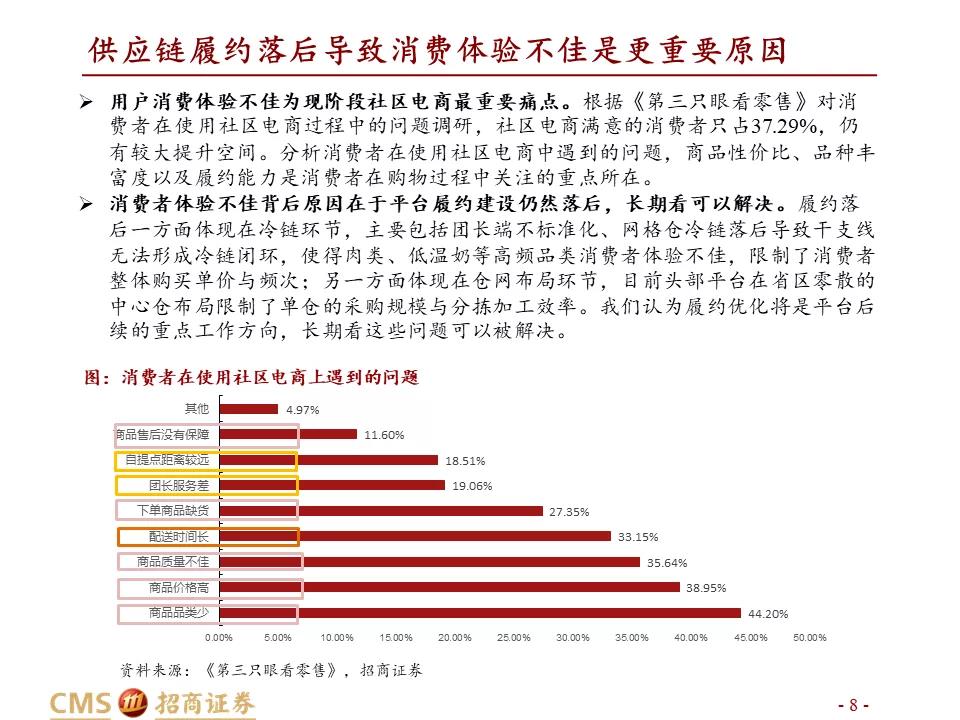 受监管收紧、行业淡季、履约建设落后导致消费者体验不佳等因素,Q3社区电商增长低于预期,预计9月头部平台日均件数在3000万件左右。行业格局初定进入半决赛,平台更重视效率提升与体验优化, 有望驱动Q4重回高增长,头部平台12月有望达到日均5000万件体量。