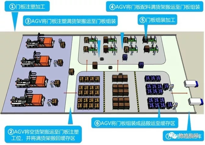 汽车制造加工厂作业主要包括以下几个流程:零部件/成品入库,存储,拣选,产线上下料,装配及出库。每个作业流程通过不同的智能化设备代替人工,提高作业效率,提升系统柔性。