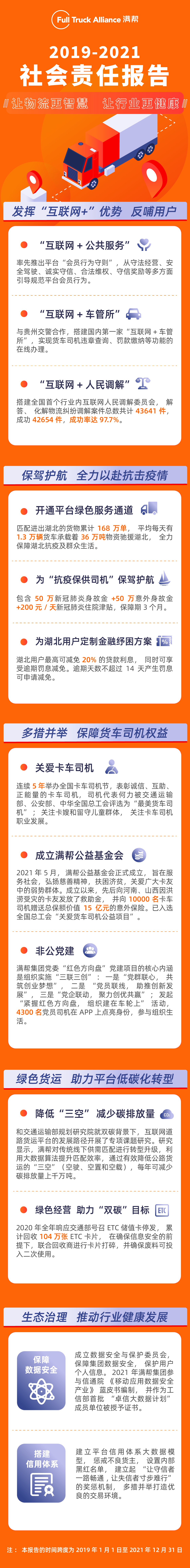 就在7月15日,满帮集团发布了2019-2021年度CSR报告。这是满帮集团发布的首份社会责任报告,也是互联网货运行业的首份社会责任报告。其中看点自然不少,令物流指闻印象深刻的,是几组数字: