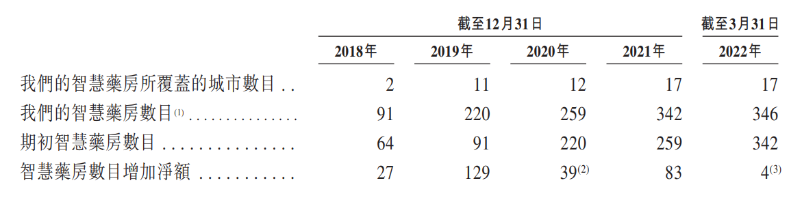 保证“效率”的前提是建立在网络布局上,生鲜电商采用的是大量建造“前置仓”,而叮当健康选择的是大量建设“智慧药房”。过去四年,叮当健康“智慧药房”的数量由2个城市64家,增至17个城市346家,业务版图增长迅速。