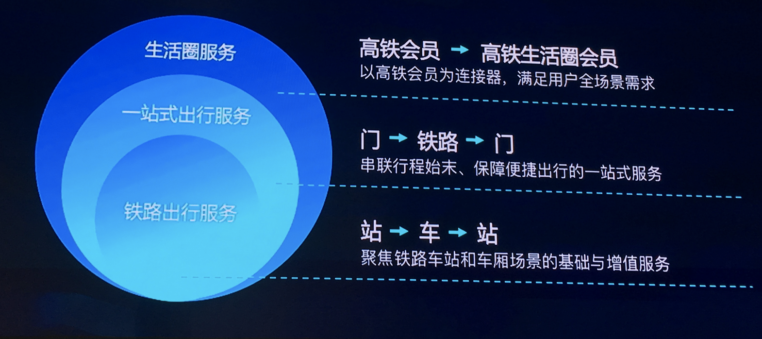 而一站式出行服务和生活圈服务则为较为长远的目标,分别是从家门口到铁路再到目的地的服务;以及以高铁会员为落脚点,延伸到日常生活中的方方面面,满足用户全场景的需求。