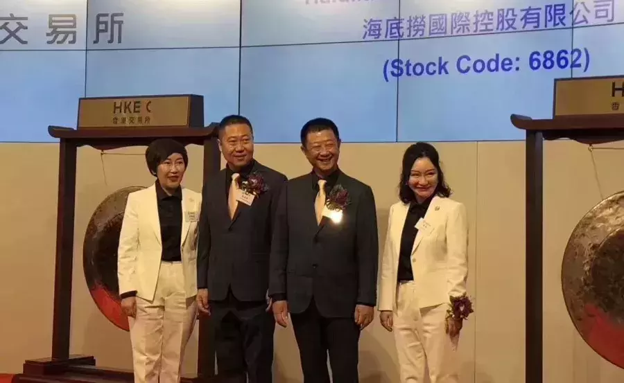 2018年9月26日上午9:30,海底捞创始人张勇、首席运营官杨利娟敲响了港交所的铜锣。