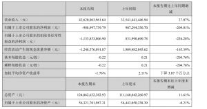 4月22日晚间,顺丰控股正式发布一季报。报告显示,一季度顺丰控股营业收入426.2亿元,同比增长27.07%;归属于上市公司股东净亏损9.89亿元,上年同期盈利9.07亿元,归属于上市公司股东的扣除非经常性损益净亏损11.34亿元,上年同期盈利8.32亿元;基本每股收益为-0.22元。