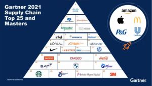 “Gartner Top 25”被认为是业内唯一跨行业评价供应链水平和成熟度的标尺,距今已经连续发布了17年。入围该榜单必须符合四项标准:列入《财富》全球500强或福布斯全球2000强的制造商、经销商和零售商;公开财务数据;年营收超过120亿美元;且实体产品营收大于50%,即60亿美元。而Gartner则会参照入选公司最近三年的总资产收益率、库存周转水平、收入增长水平、ESG(环境社会治理,即企业社会责任)等硬指标,以及同行评分和分析师评分等软指标来综合评分。