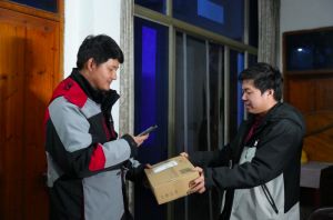 2025年1月20日凌晨,浙江省杭州市,一台vivo手机已由顺丰小哥派送到了客户关先生的手中,这是2025年天猫平台送出的首单3C国补快递。